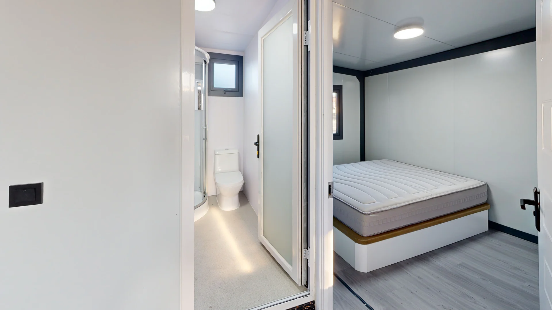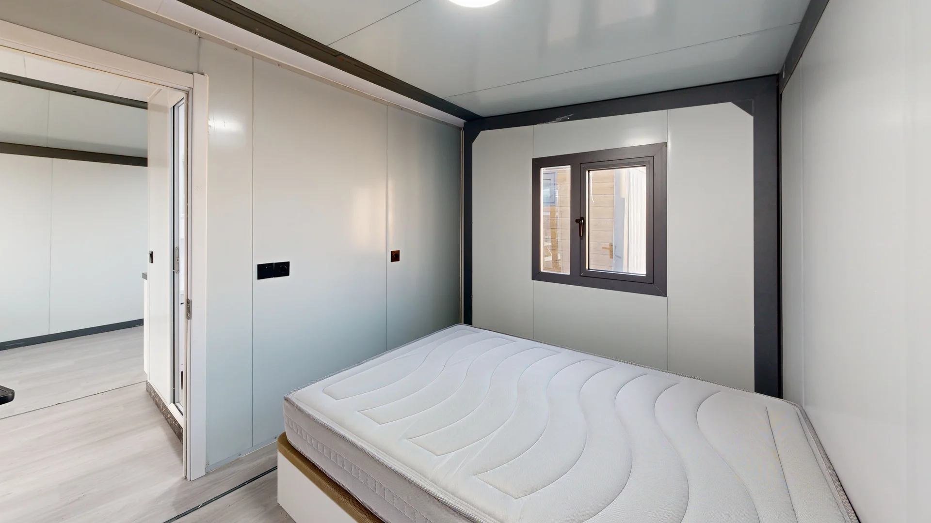 El porche de 18 m² se convierte en un espacio adicional ideal para disfrutar al aire libre, perfecto para reuniones familiares o momentos de relajación. La estructura está construida con paneles sándwich de 50 mm y un doble revestimiento de 18 mm, lo que asegura un excelente aislamiento térmico y acústico, garantizando un ambiente agradable durante todo el año.